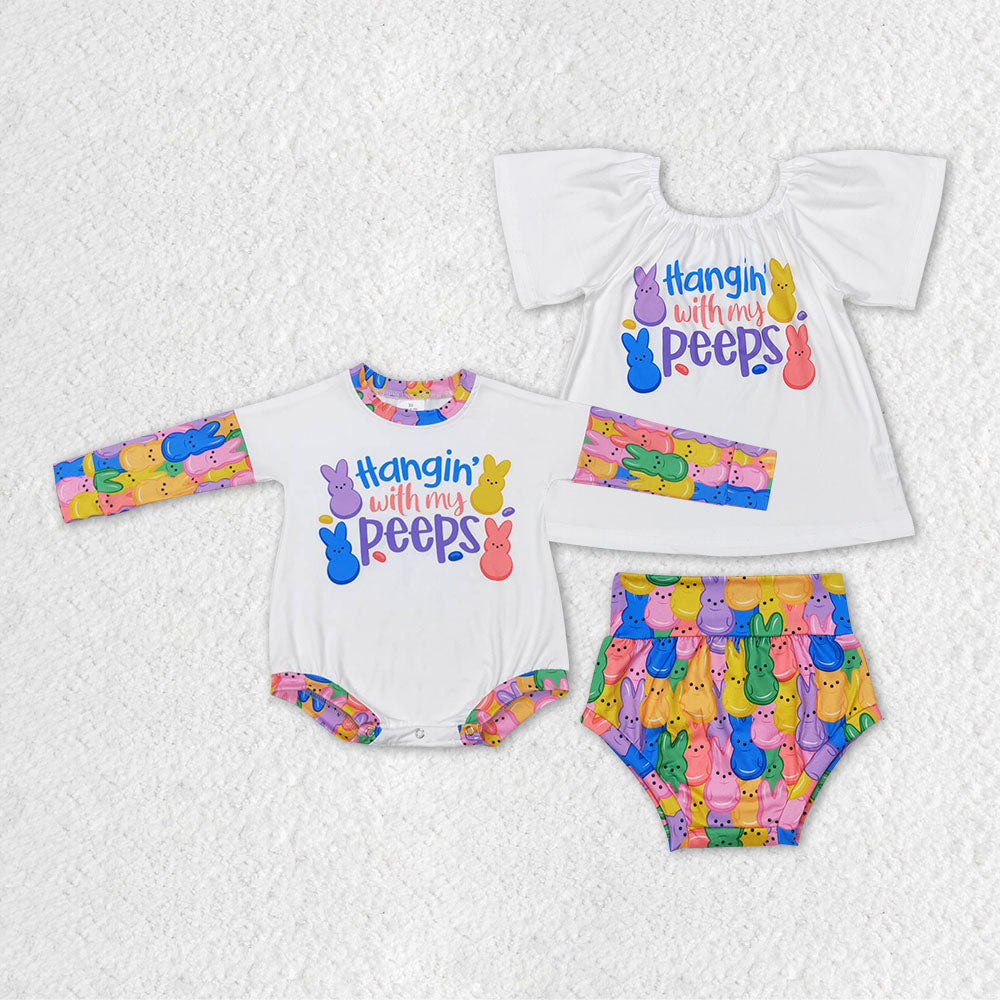 Baby Girl Easter Rabbits Sibling Bummie Set Romper