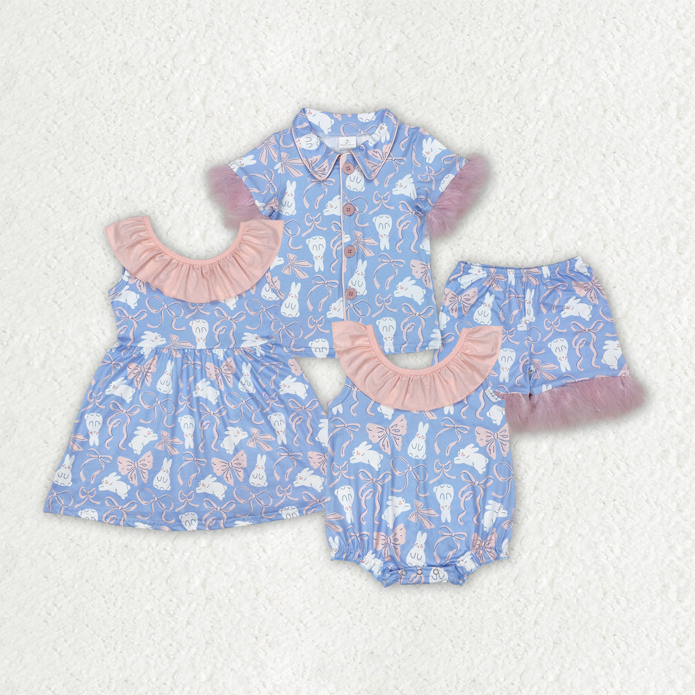Baby Girl Easter Rabbits Bows Sibling Romper Dress Pajamas Set Clothes RTS