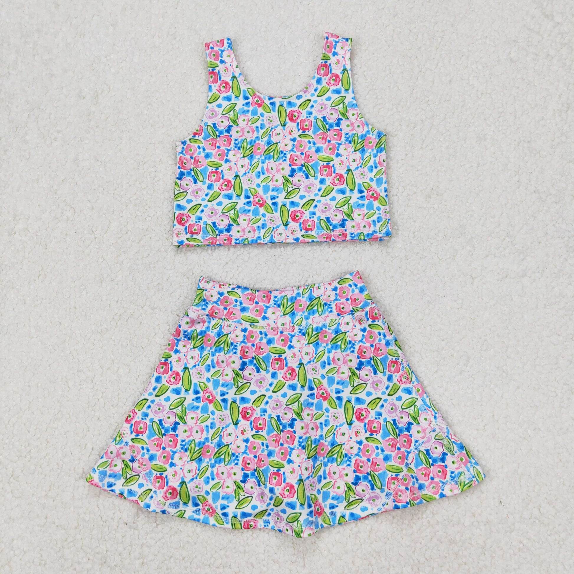 Baby Girl Sleeveless Flower Bows Sibling Athletic Yoga Skort Set Clothes RTS