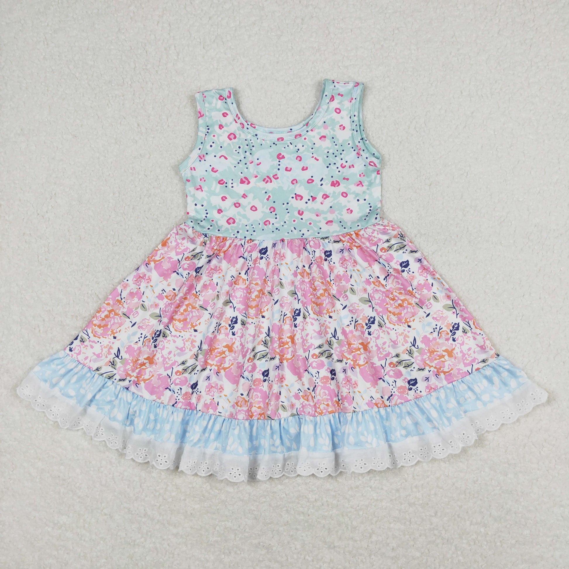 Sibling Baby Girls Toddler Sleeveless Flower Knee Length Dresses RTS