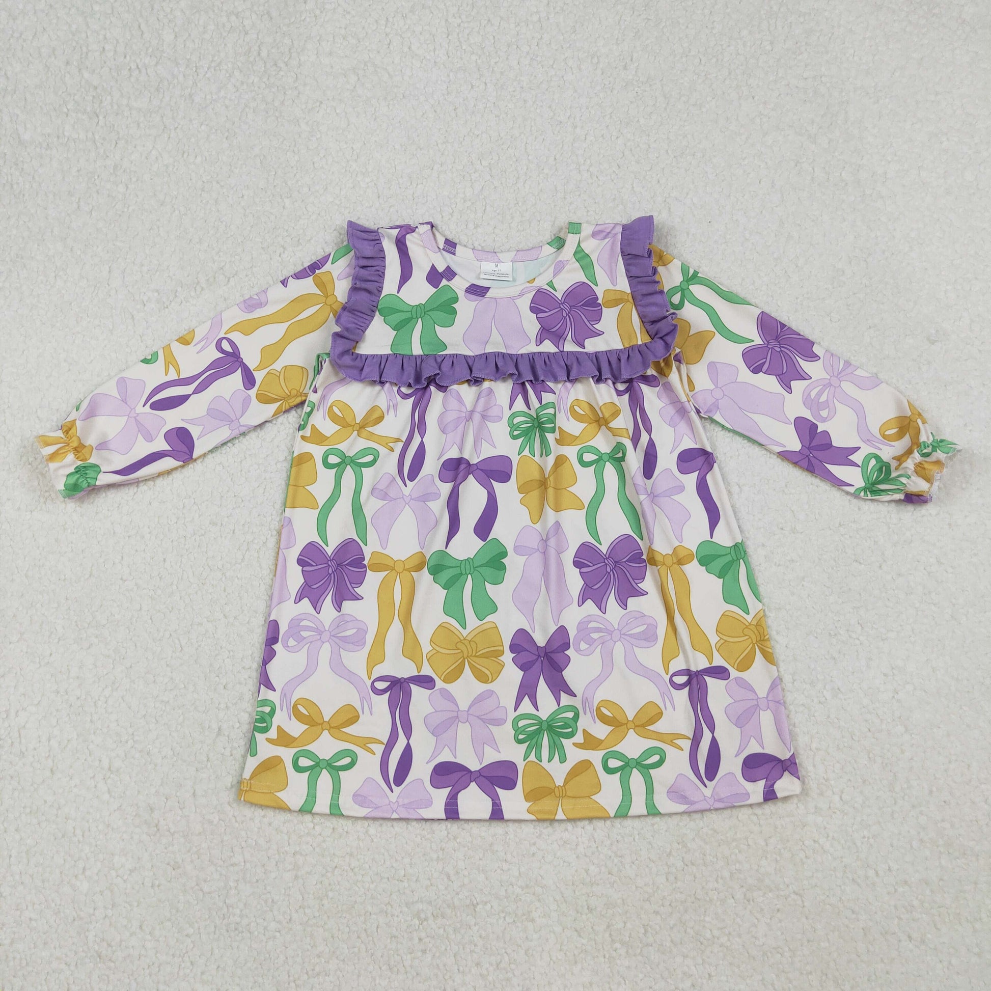 Sibling Baby Girls Kids Long Sleeves Mardi Gras Ruffle Knee Length Dresses RTS