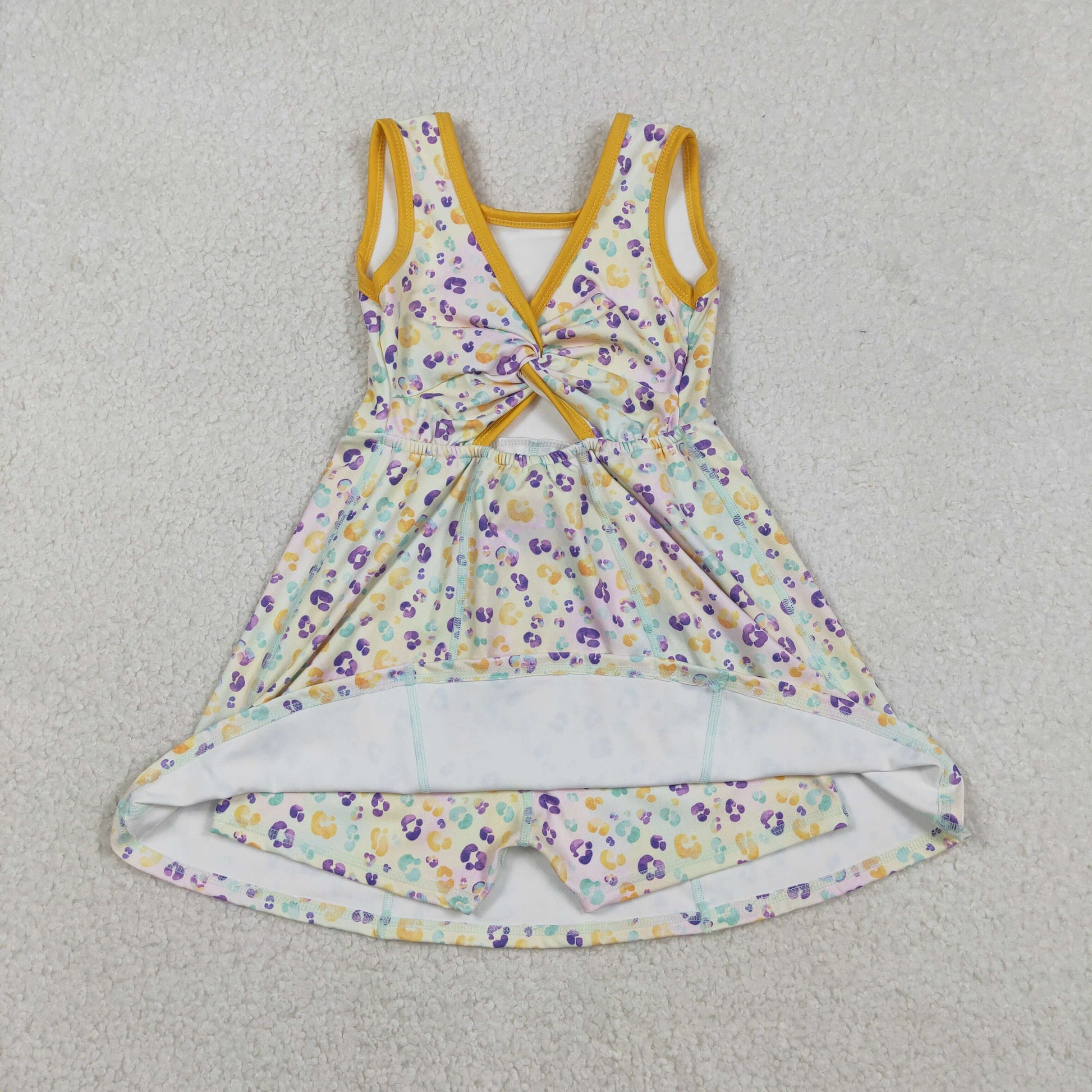 Sibling Baby Girls Kids Mardi Gras Leopard Skort Yoga Active Dress Zipper Set RTS