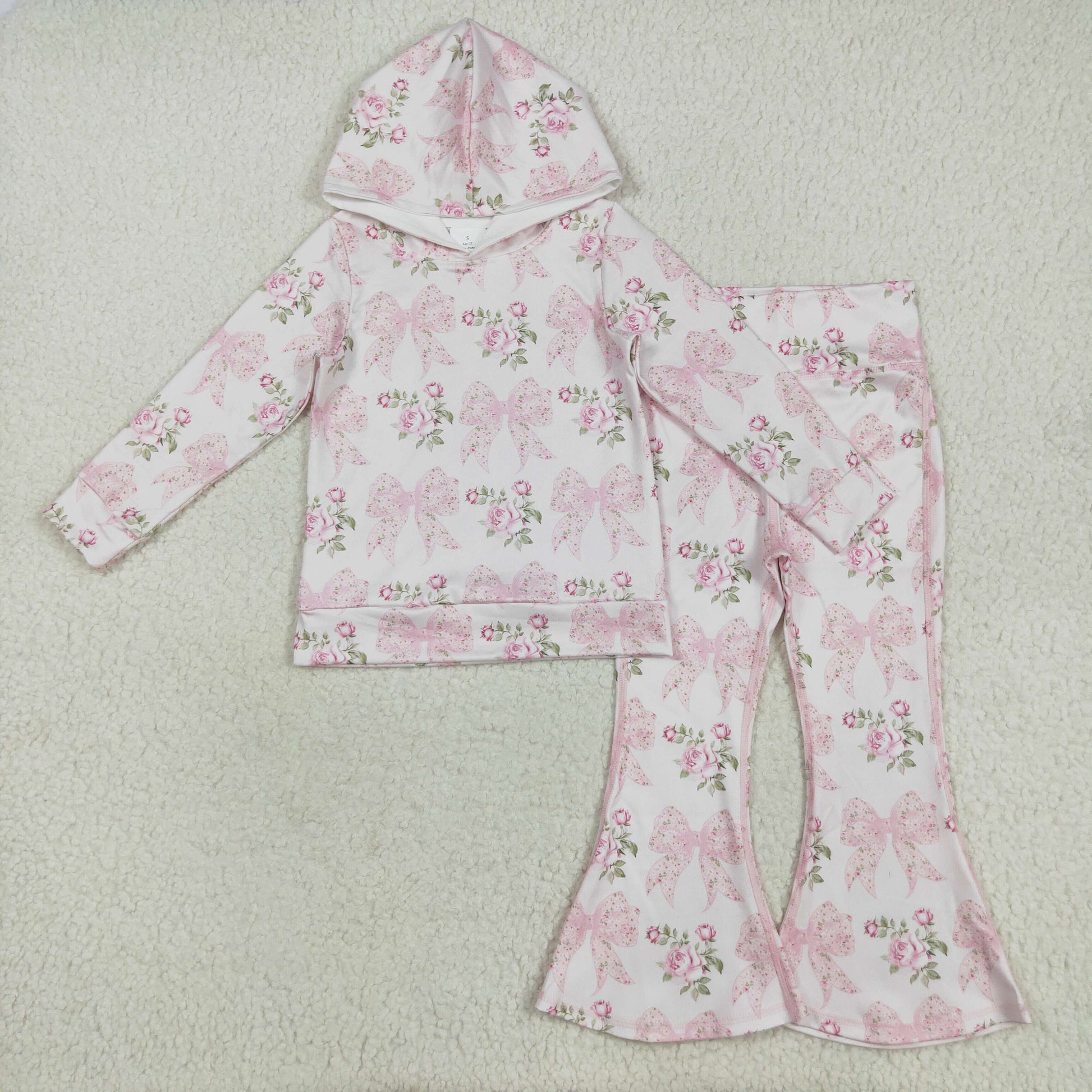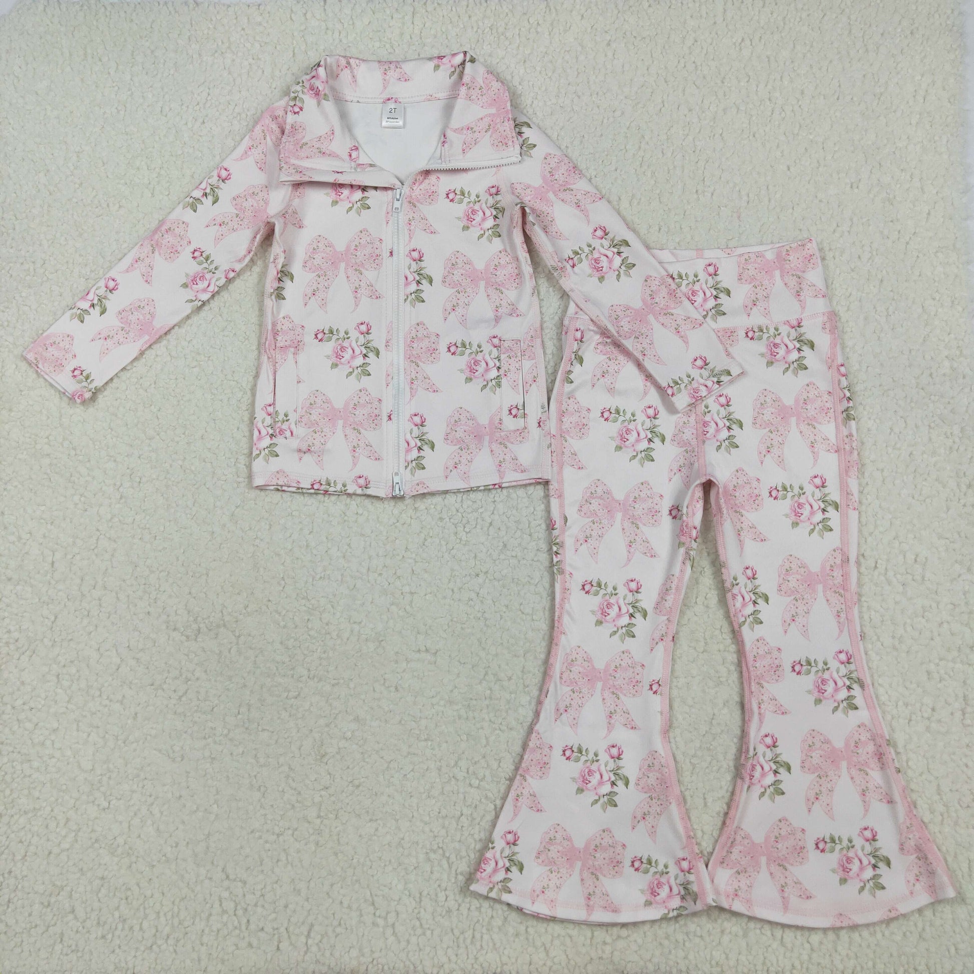 Girls Girls Long Sleeves Pink Bows Floral Sibling Yoga Active Clothes Set RTS