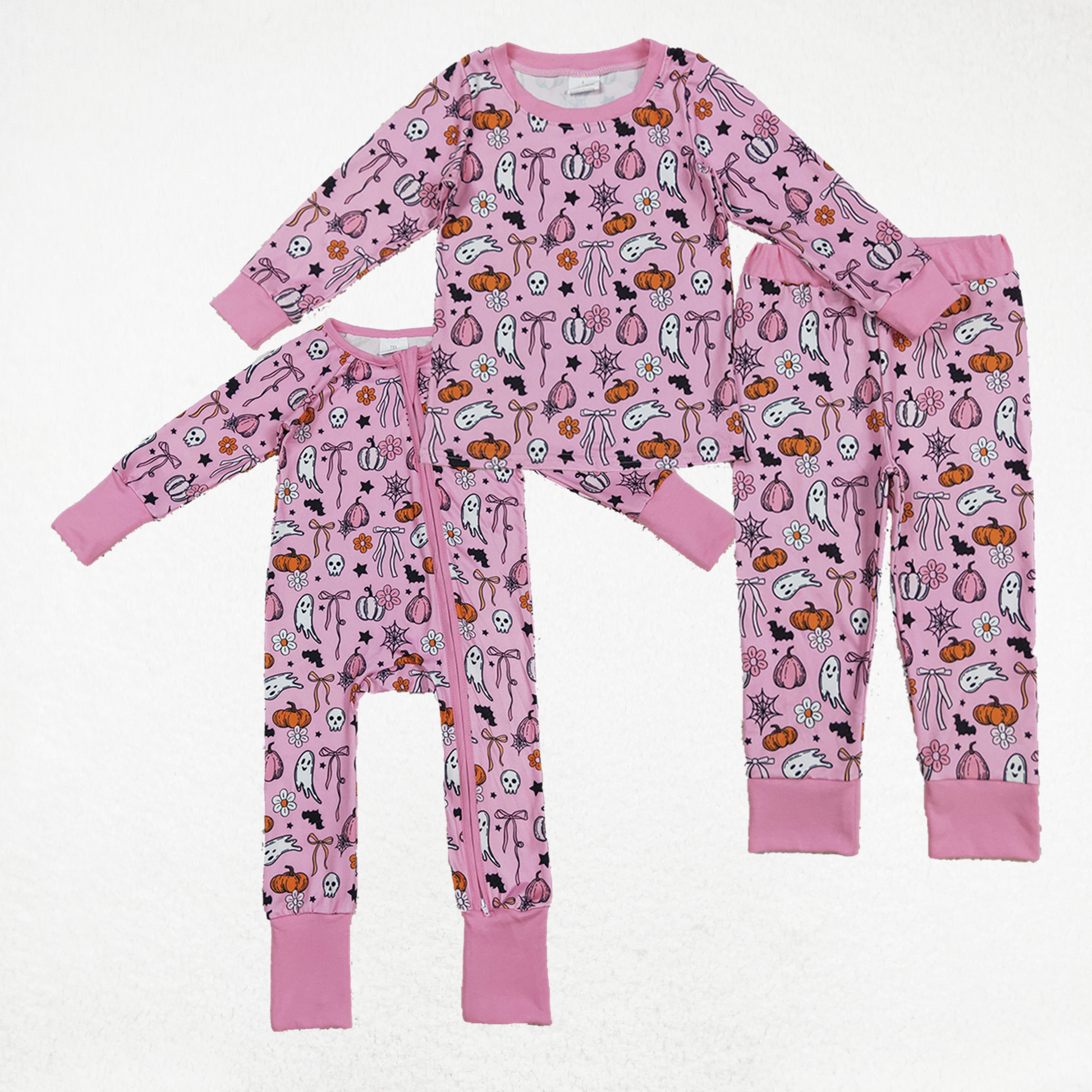 Baby Girl Long Sleeves Ghost Pumpkins Bows Flower Sibling Halloween Pajamas Romper Set RTS