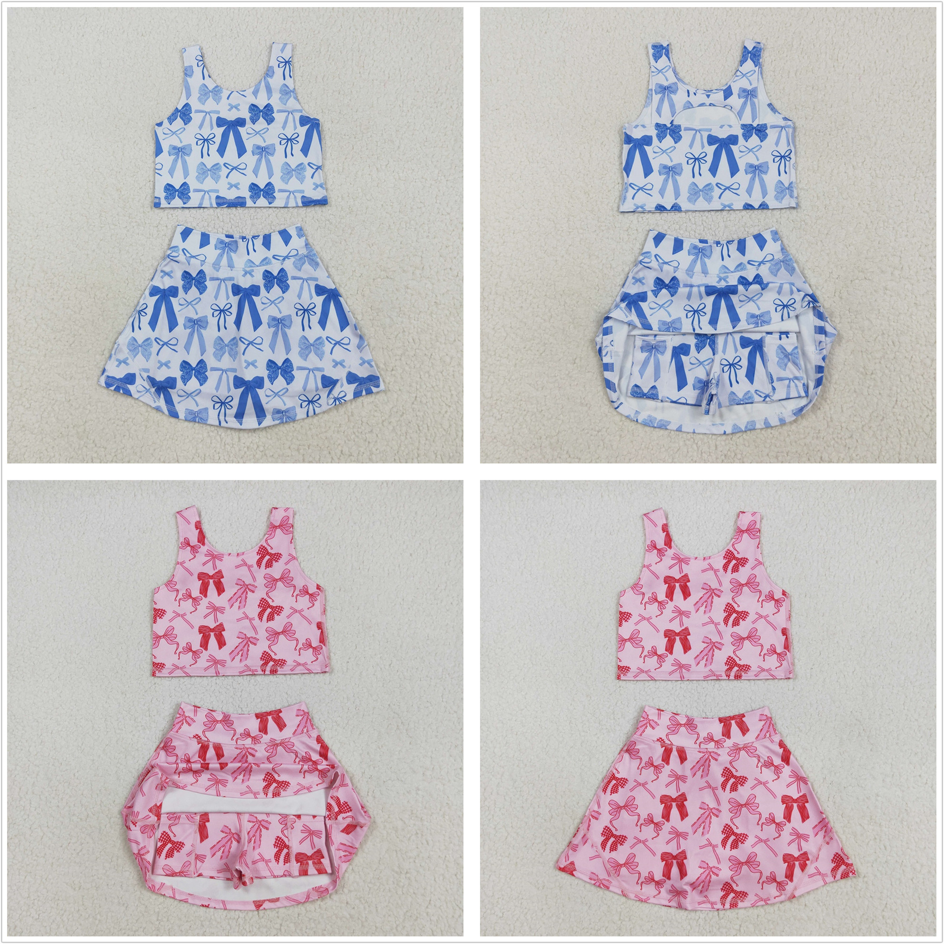 Baby Girl Sleeveless Bows Tops Skorts Yoga Active Set Sibling Clothes RTS