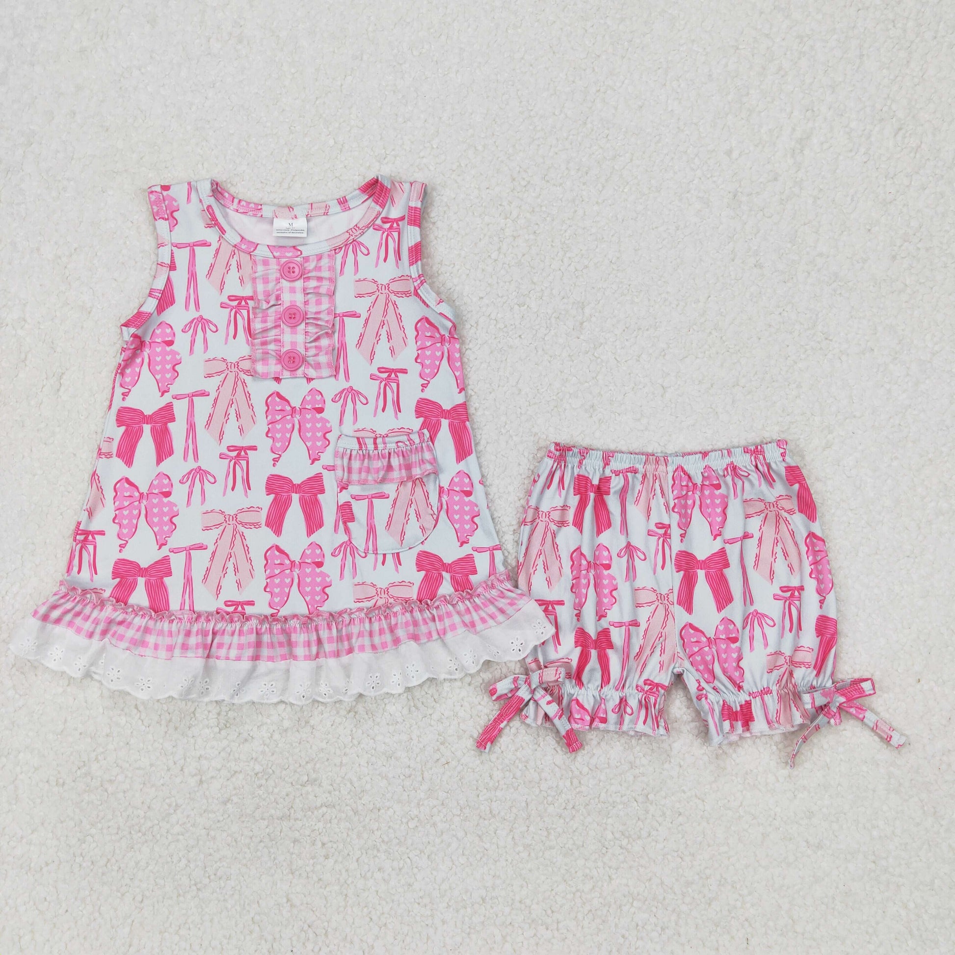 Baby Girl Sleeveless Bows Flower Buttons Tunic Ruffle Shorts Set Sibling Clothes RTS