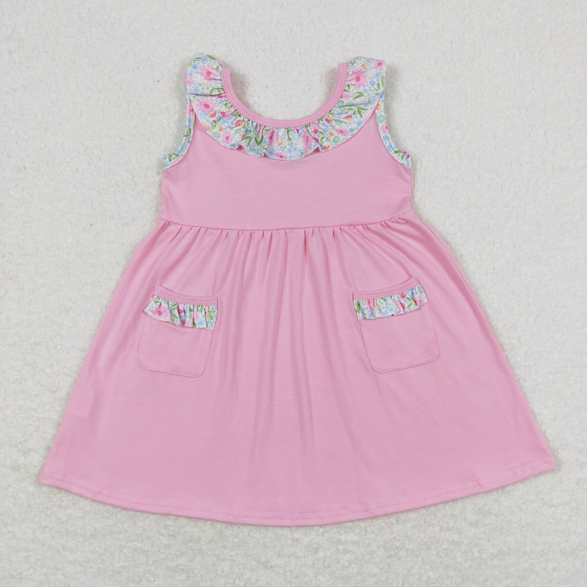 Sibling Baby Girls Kids Sleeveless Flowers Ruffle Knee Length Dresses RTS