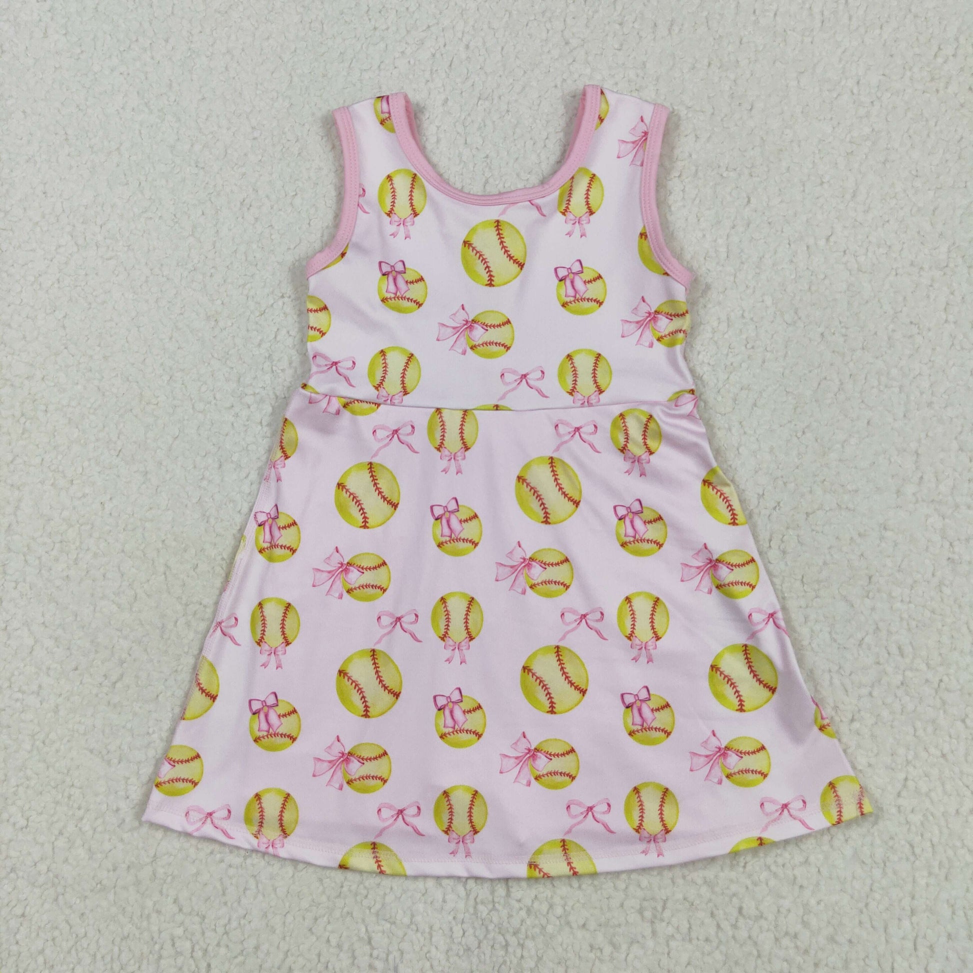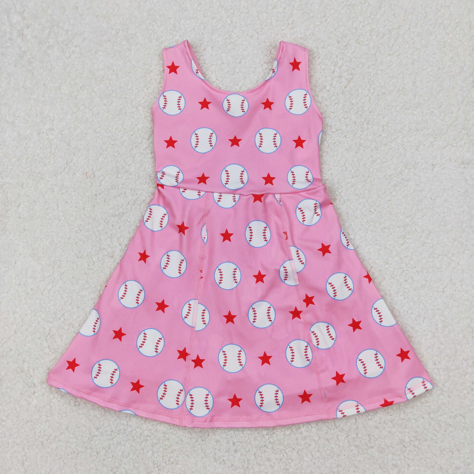 Sibling Baby Girls Kids Softballs Baseballs Yoga Active Shorts Knee Length Dresses RTS