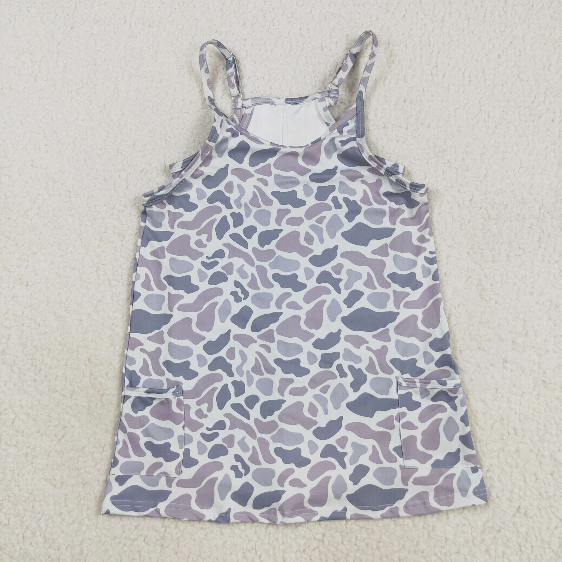 Girls Kids Straps Camo Pockets Yoga Active Grey Sibling Sister Knee Length Dress RTS