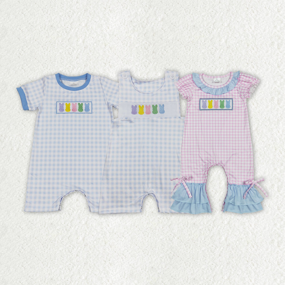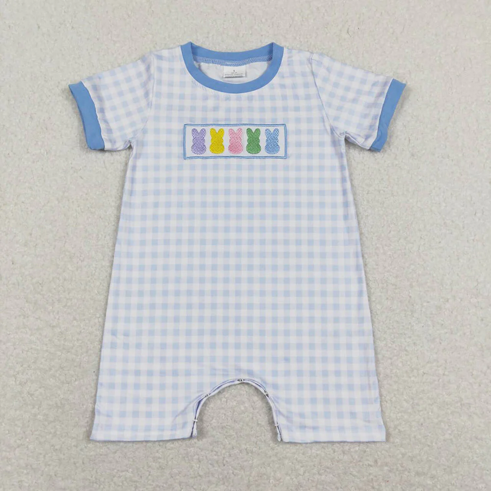 Baby Boy Girl Infant Short Sleeves Embroidery Easter Rabbits Sibling Romper