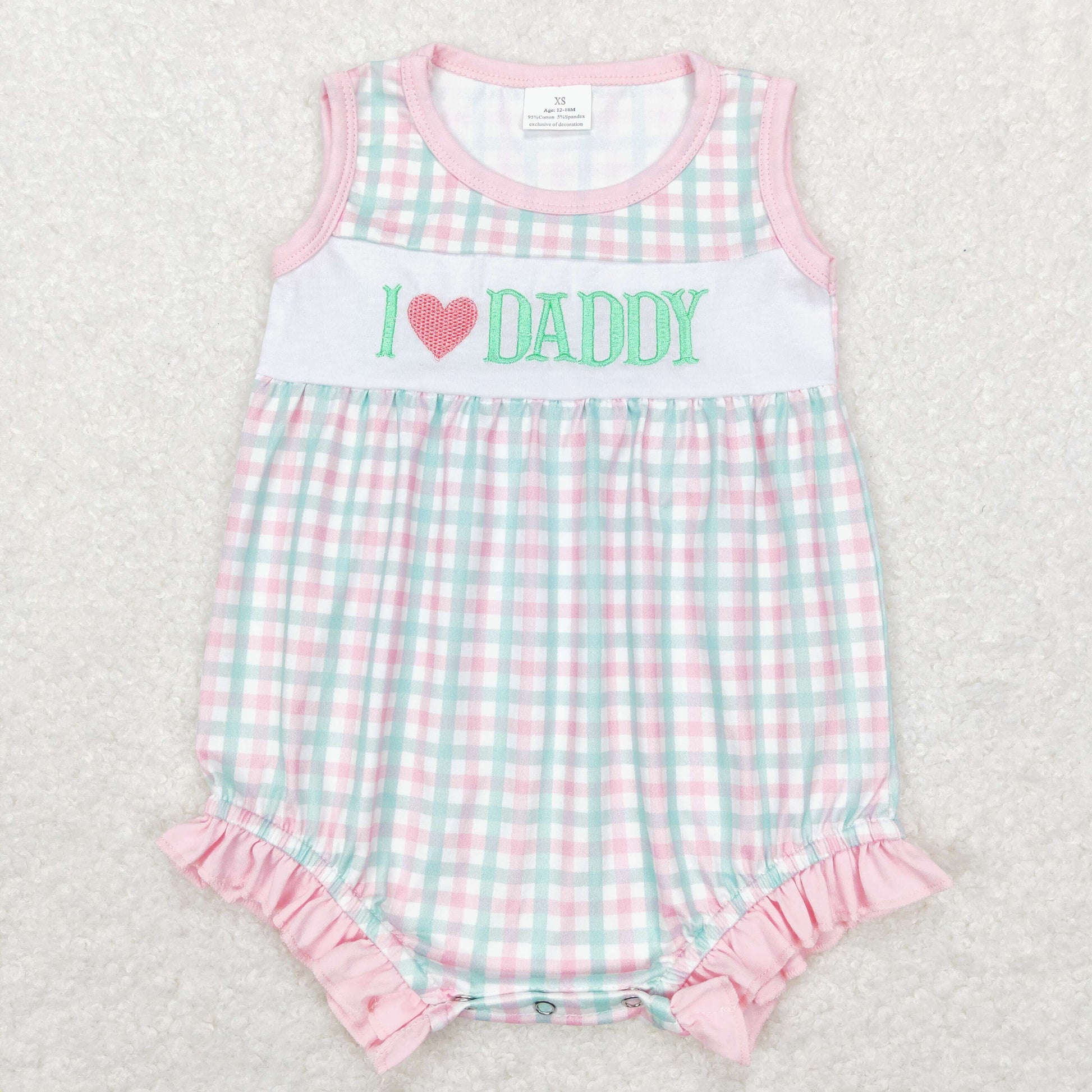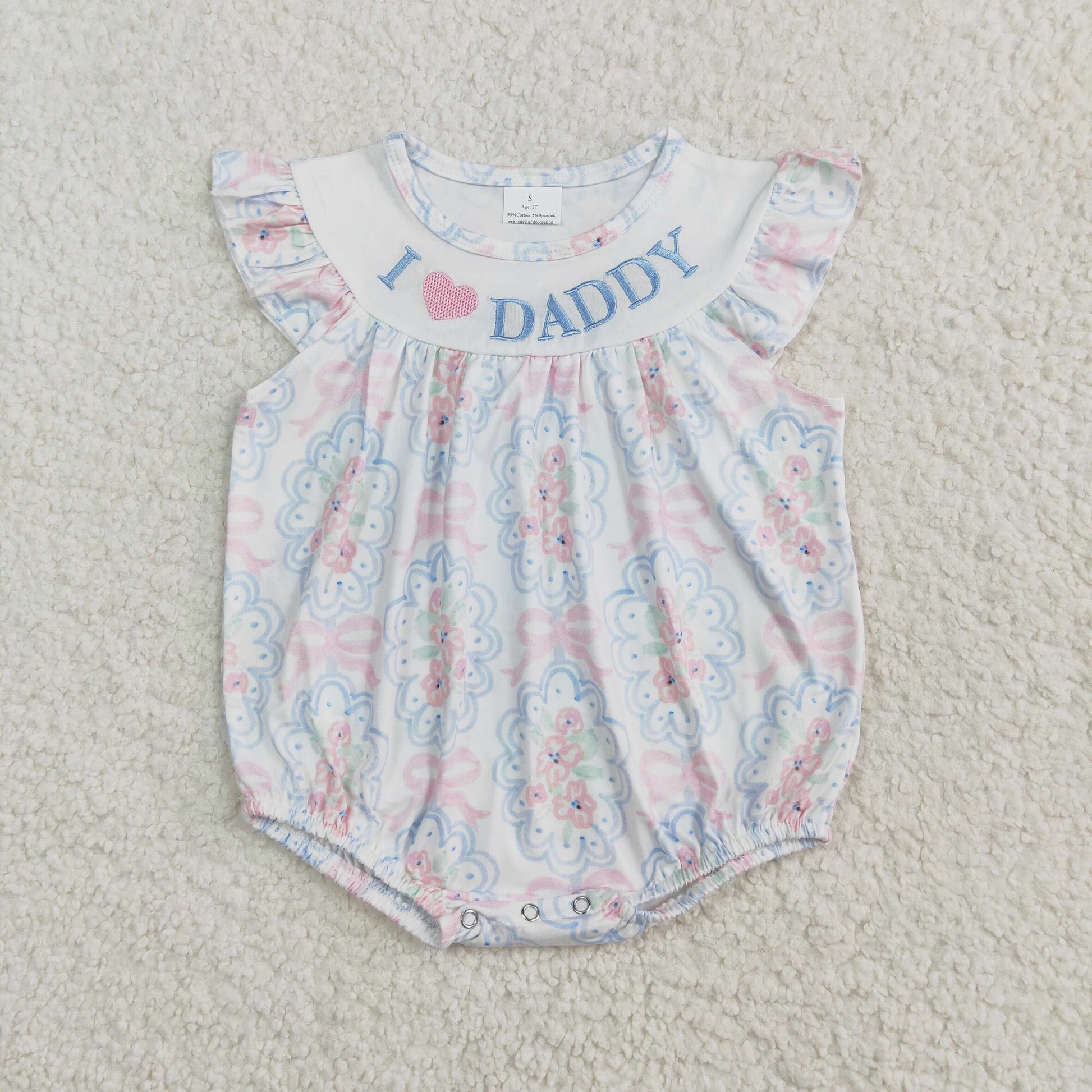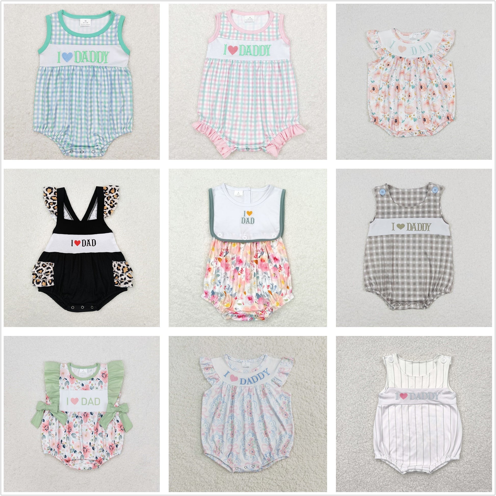 Baby Boy Girl Infant I Love Dad Flower Leopard Sibling Summer Romper RTS