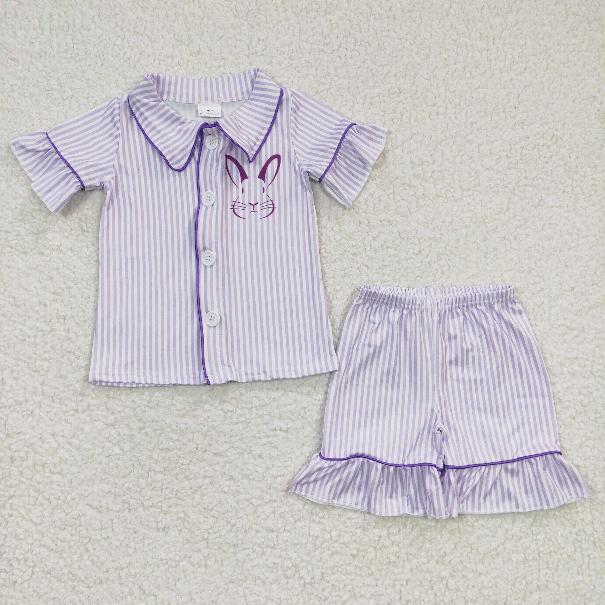 Baby Boy Girl Kids Short Sleeves Rabbits Easter Pajamas Shorts Sibling Set RTS