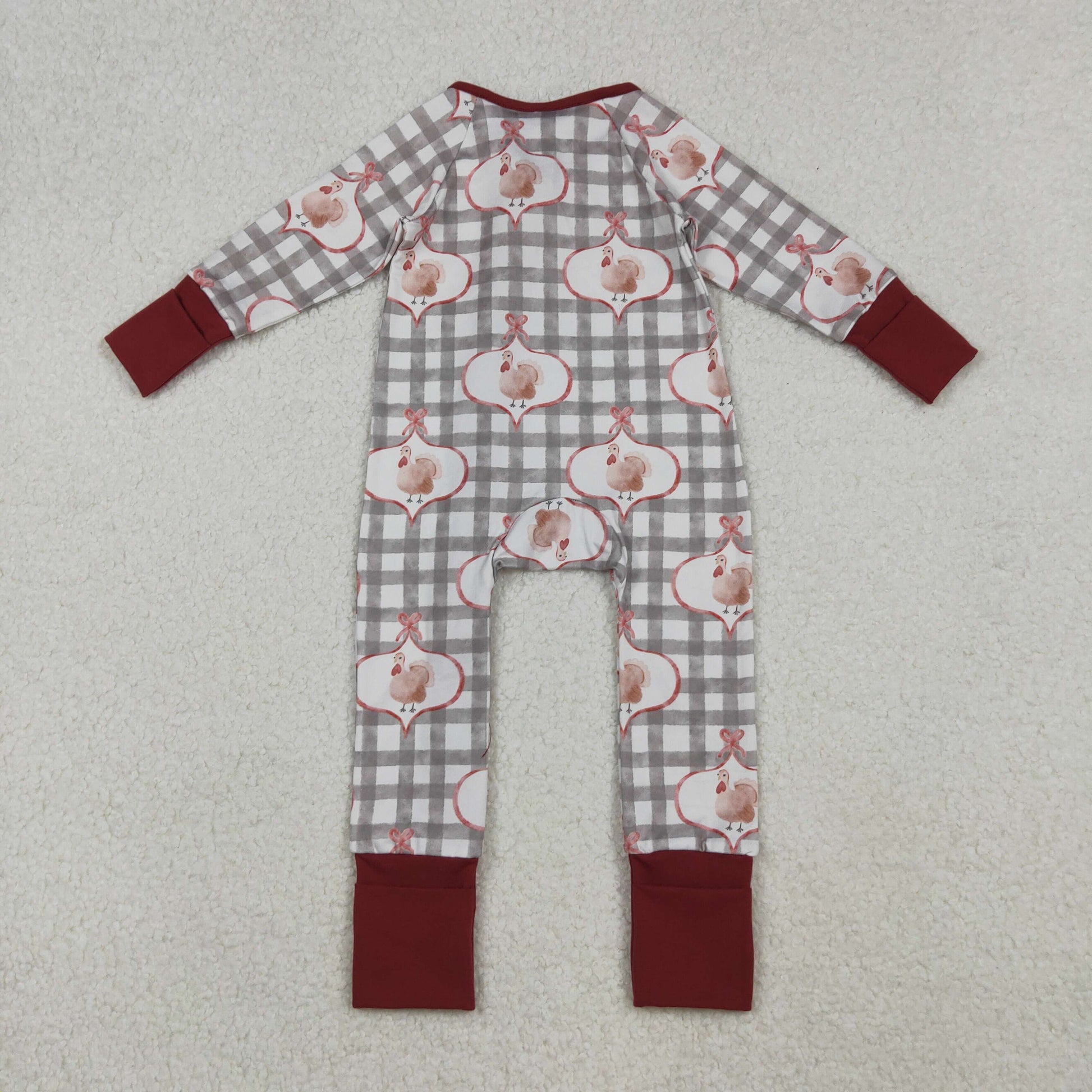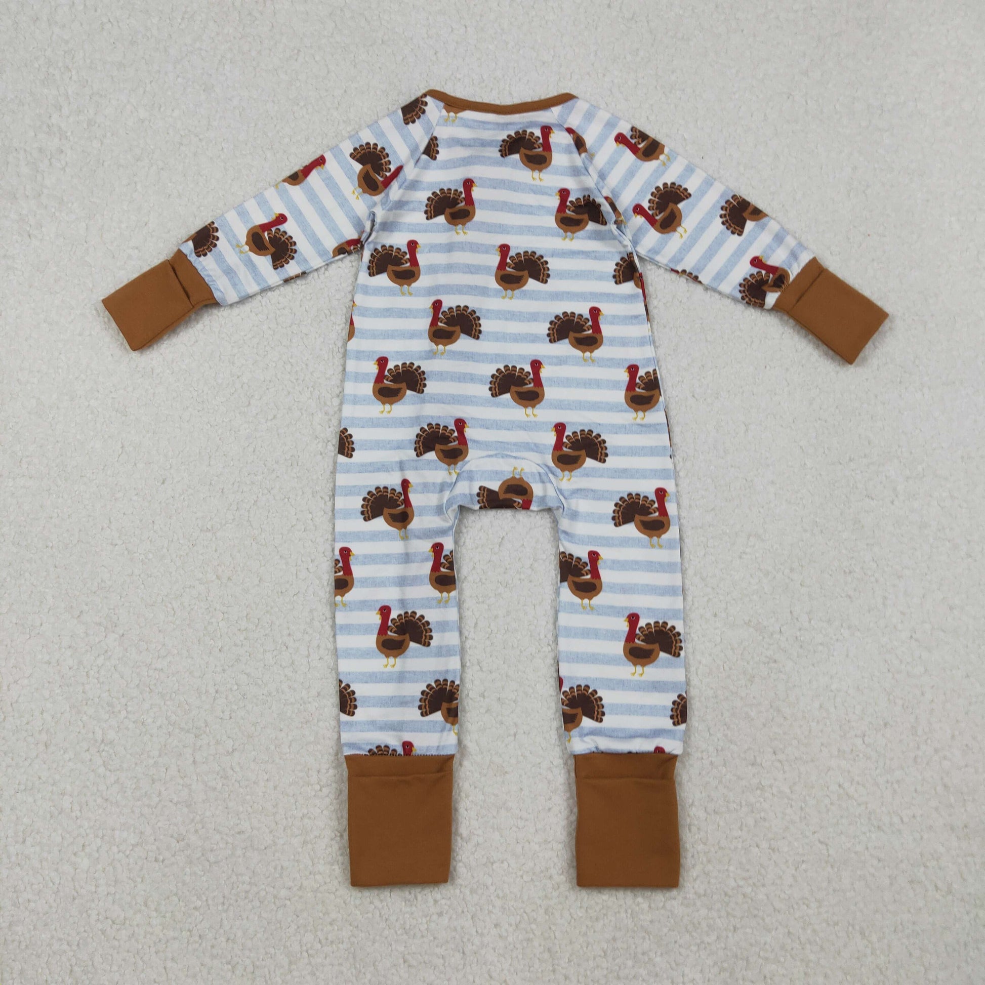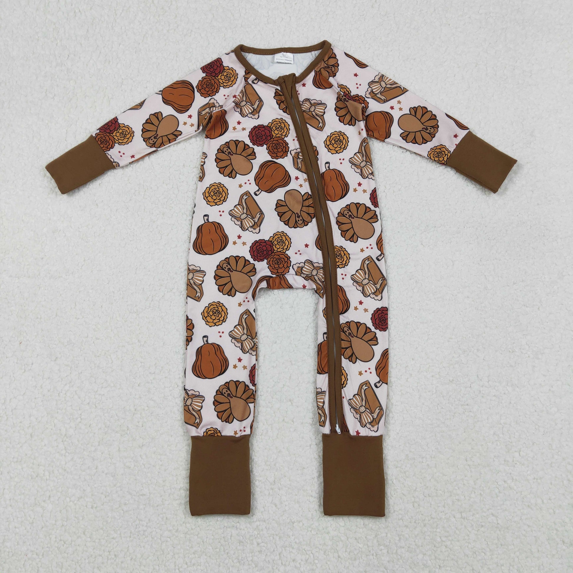 Sibling Baby Boys Girls Kids Thanksgiving turkey Pumpkins Pies Two-way Zipper Footie Sleeper Rompers RTS