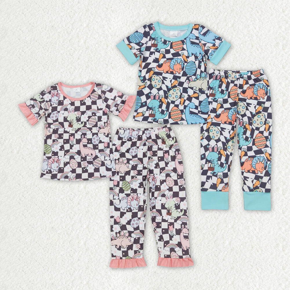 Baby Boy Girl Short Sleeves Easter Dinosaurs Eggs Sibling Pajamas Clothes Set
