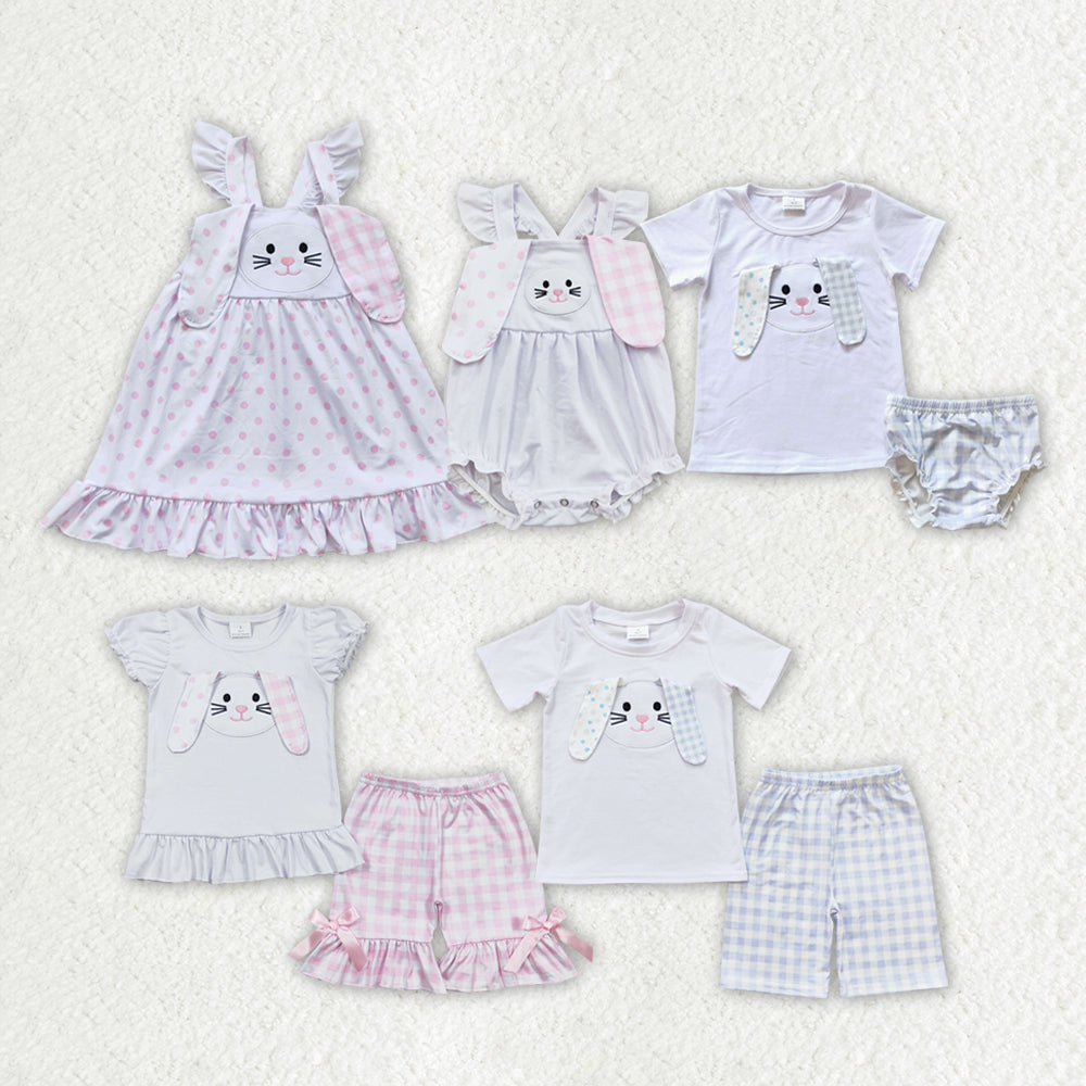 Baby Boy Girl Embroidery Easter Rabbit Ears Sibling Romper Dress Set