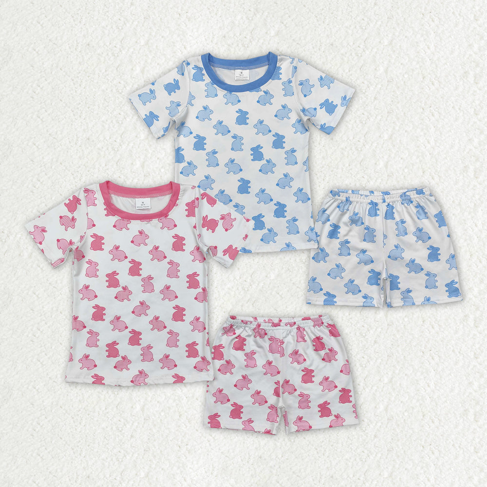 Baby Boy Girl Short Sleeves Easter Rabbits Shirt Shorts Sibling Pajamas Clothes Set