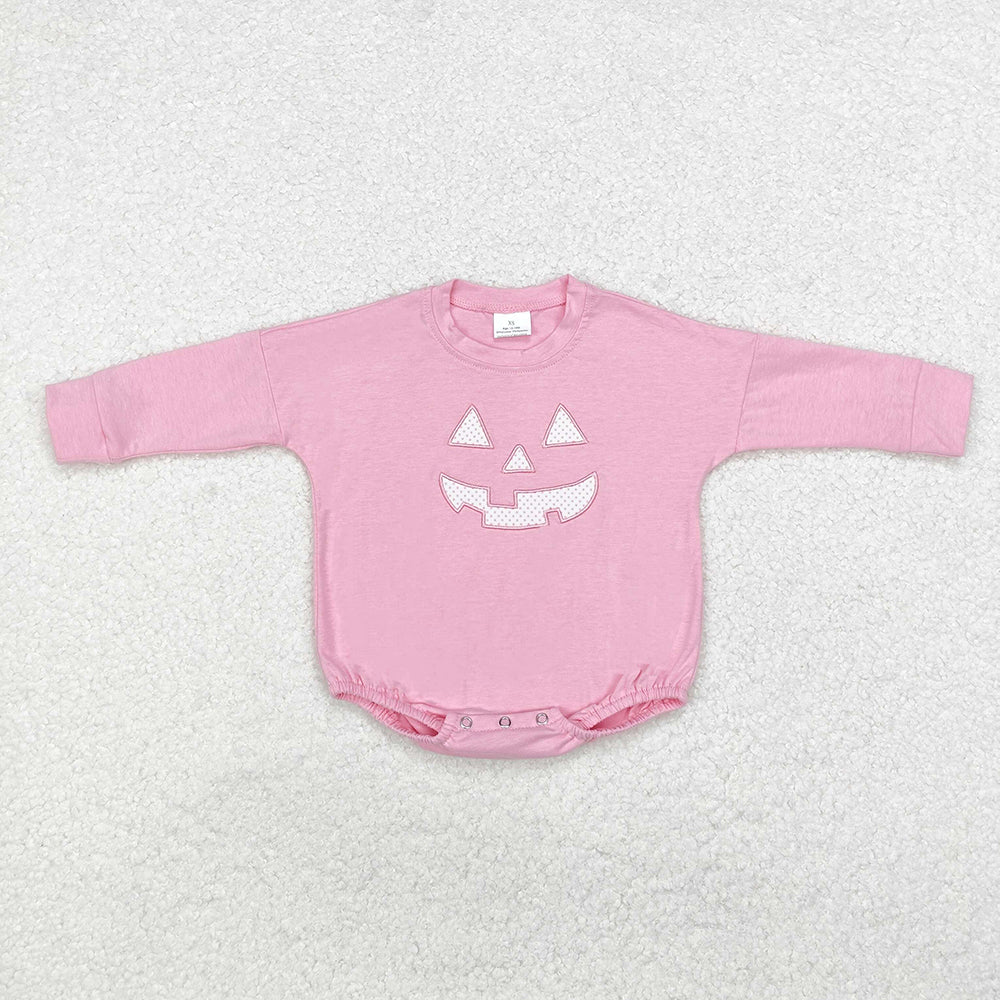 Baby Boy Girl Long Sleeves Embroidery Halloween Smile Face Sibling Cotton Bubble Romper