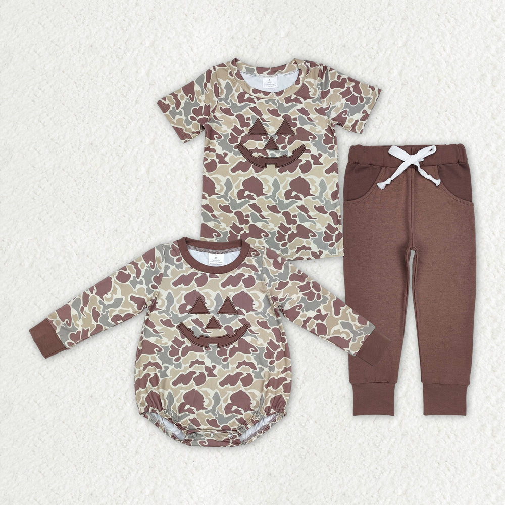 Baby Boy Halloween Embroidery Sibling Camo Romper Clothes Set