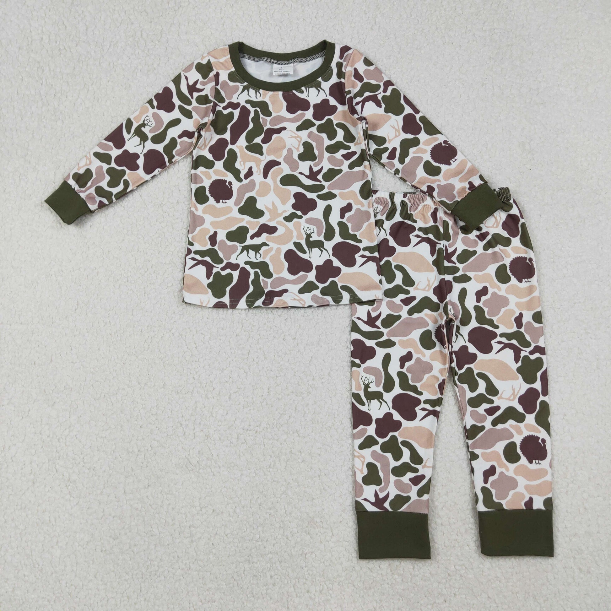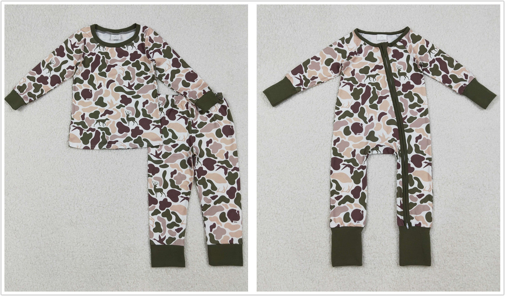 Sibling Boys Kids Long Sleeves Ducks Dogs Camo Hunting Zipper Romper Pajamas Set RTS