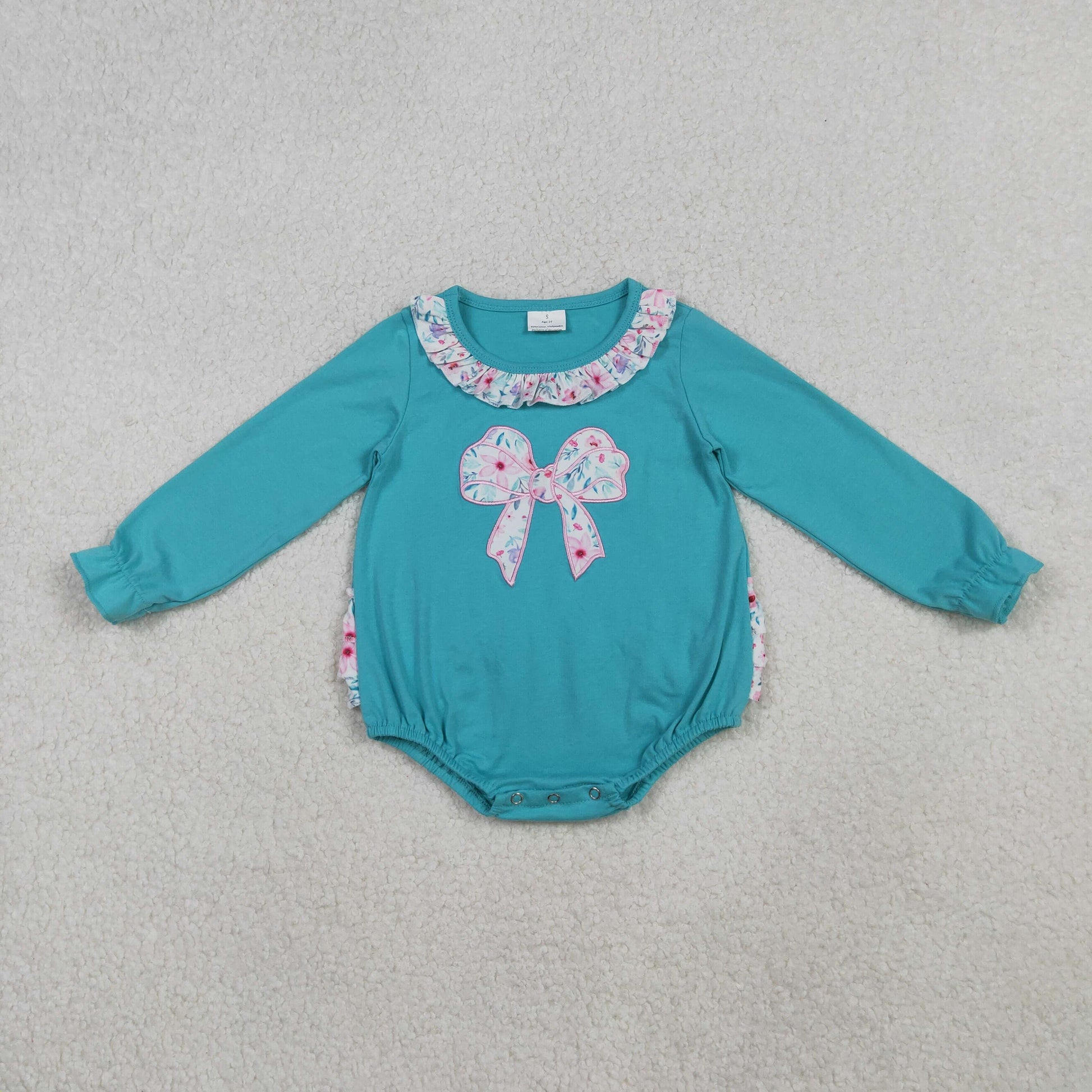 Sibling Baby Girl Long Sleeves Embroidery Floral Bow Ruffle Romper Dress RTS