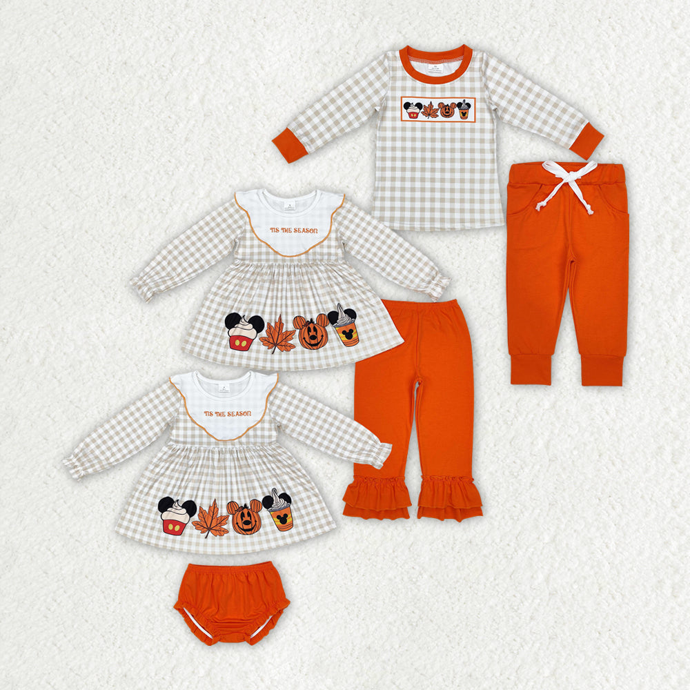 Baby Boy Girl Long Sleeves Halloween Plaid Cartoon Tops Pants Sibling Clothes Set