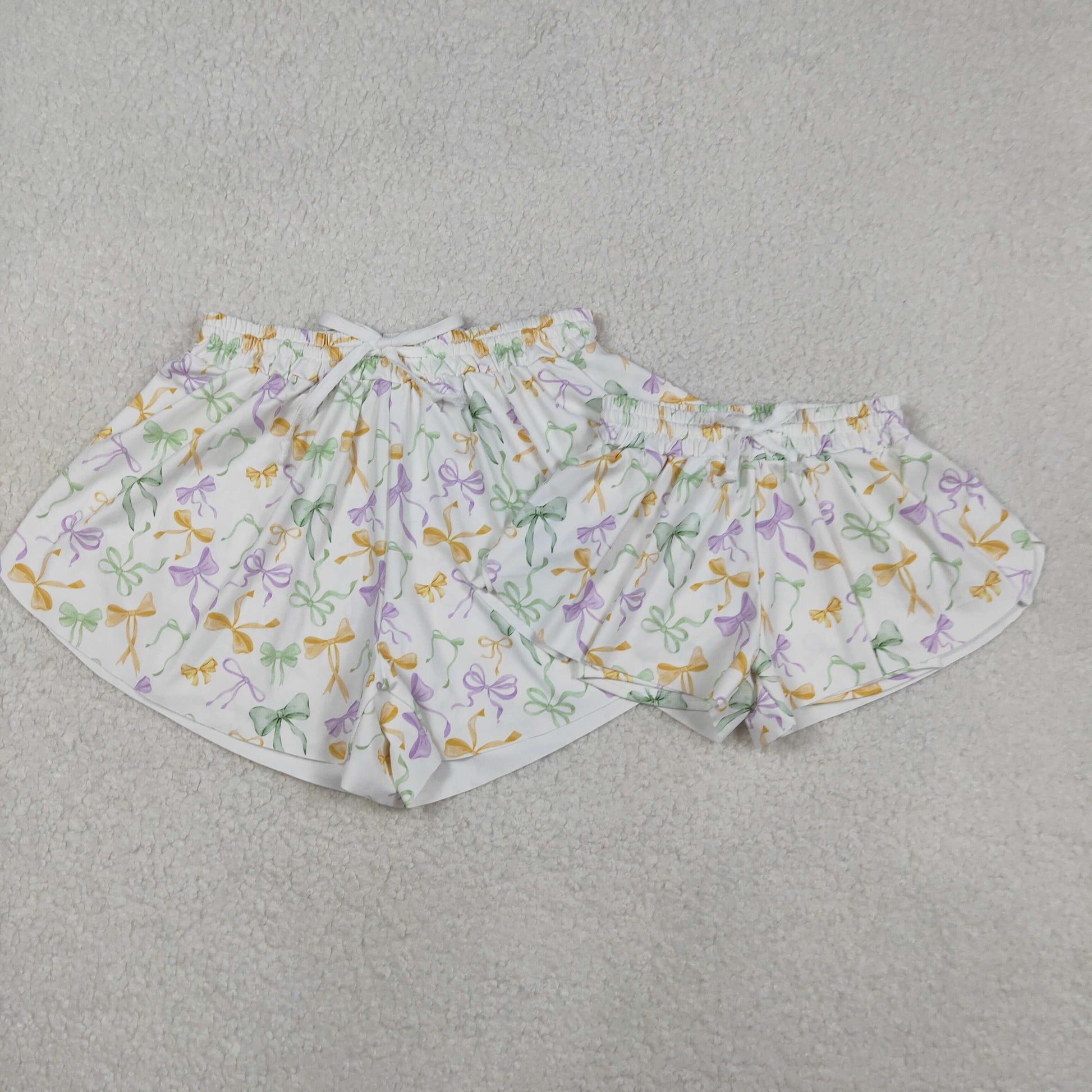 Sibling Kids Girls Adult Women Mardi Gras Bows Shorts Yoga Active Bottom Mom and Me Clothes RTS