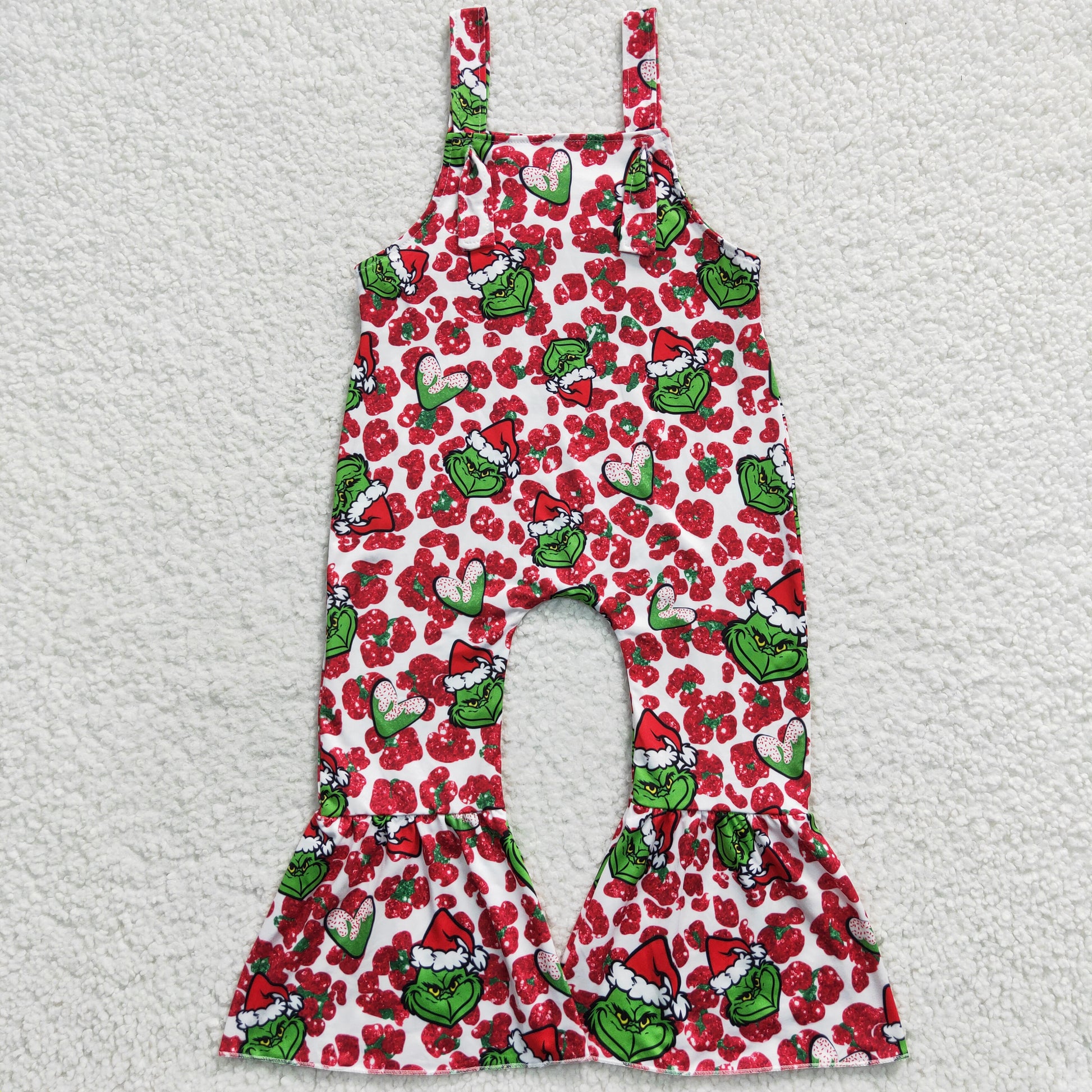 SR0389 Christmas Baby Girl Sleeveless Face Leopard Jumpsuit