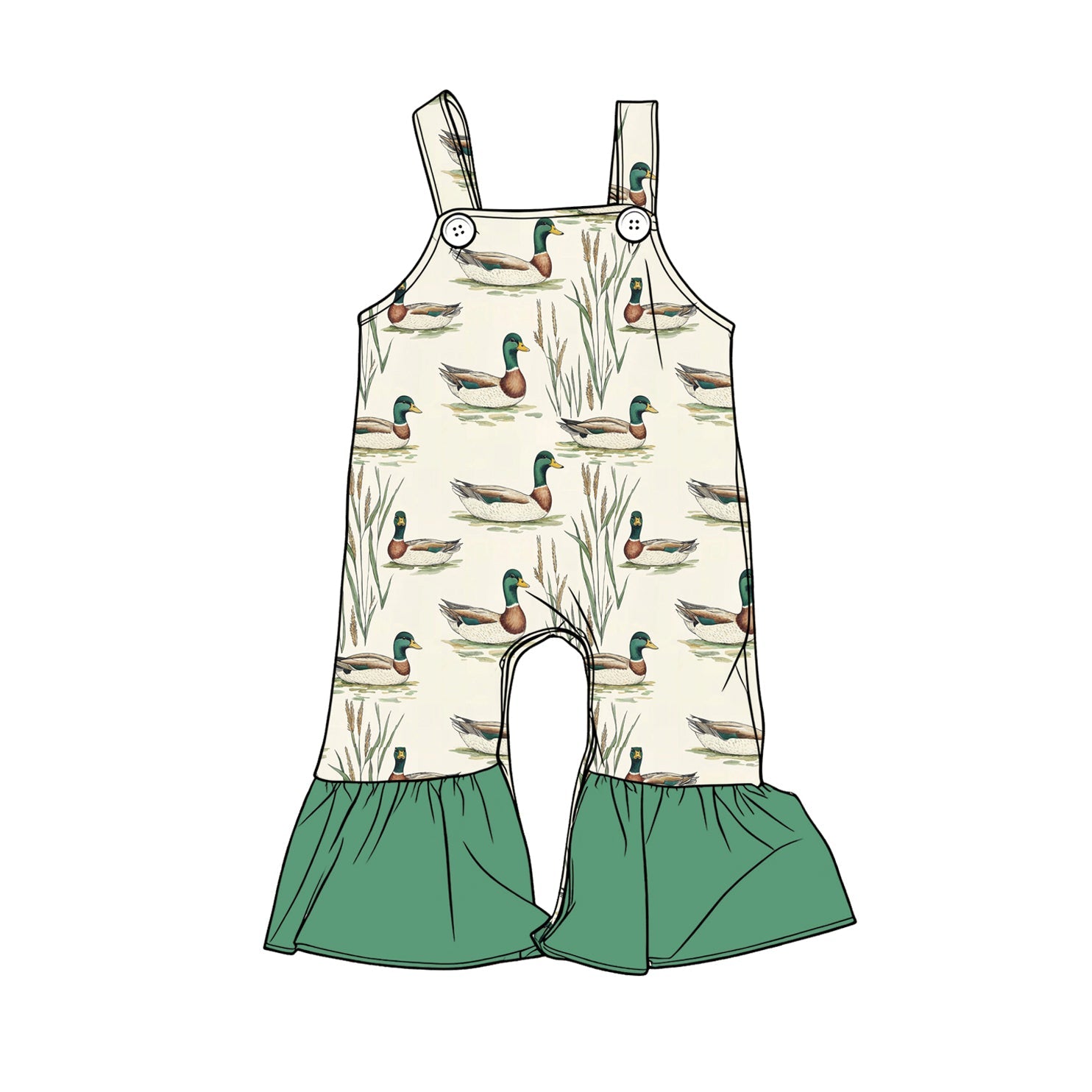 ( Moq 5 ) Preorder Baby Girls Kids Sleeveless Ducks Green Ruffle Pants Hunting Romper