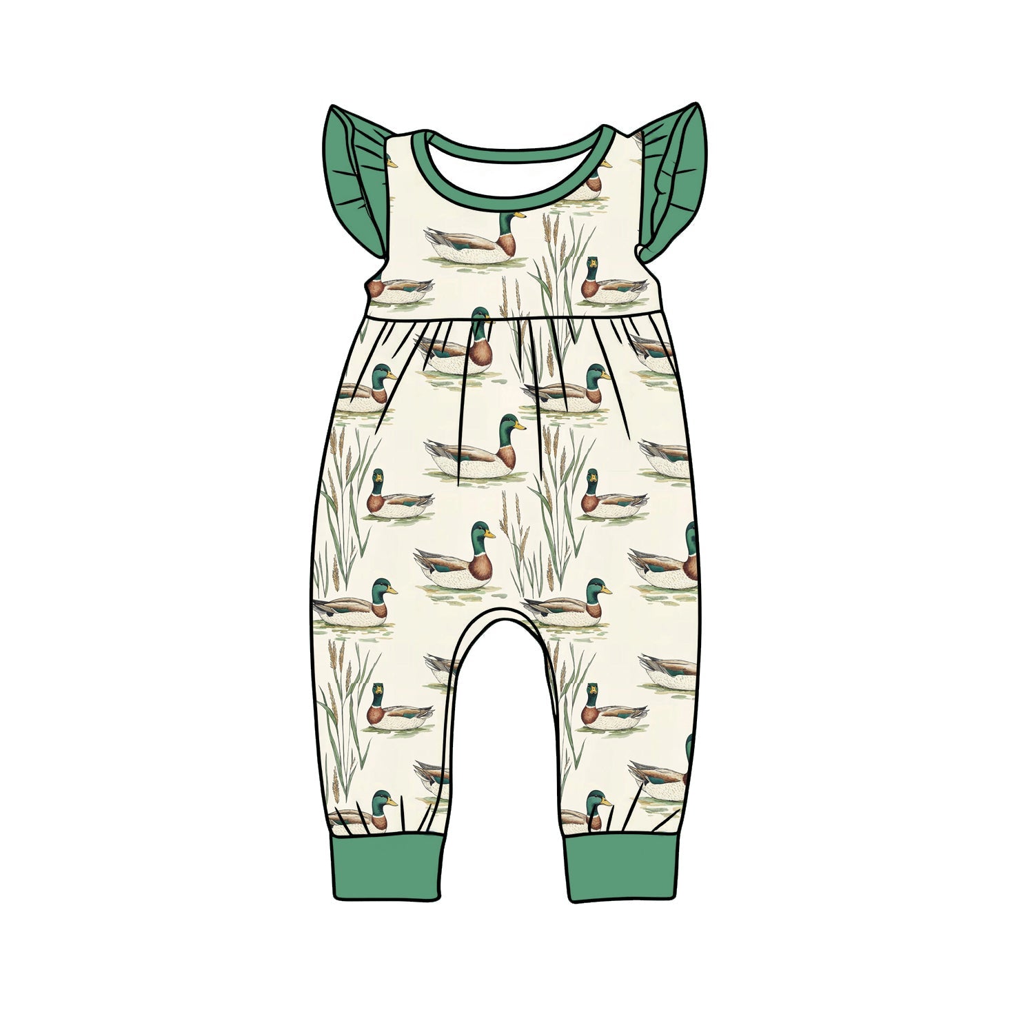 ( Moq 5 ) Preorder Baby Girls Infant Green Short Sleeves Ducks Romper