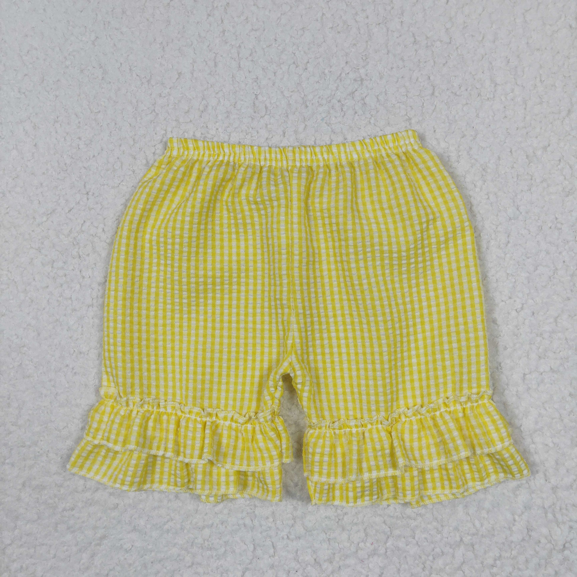 SS0065 Baby Girl Yellow Plaid Seersucker Shorts