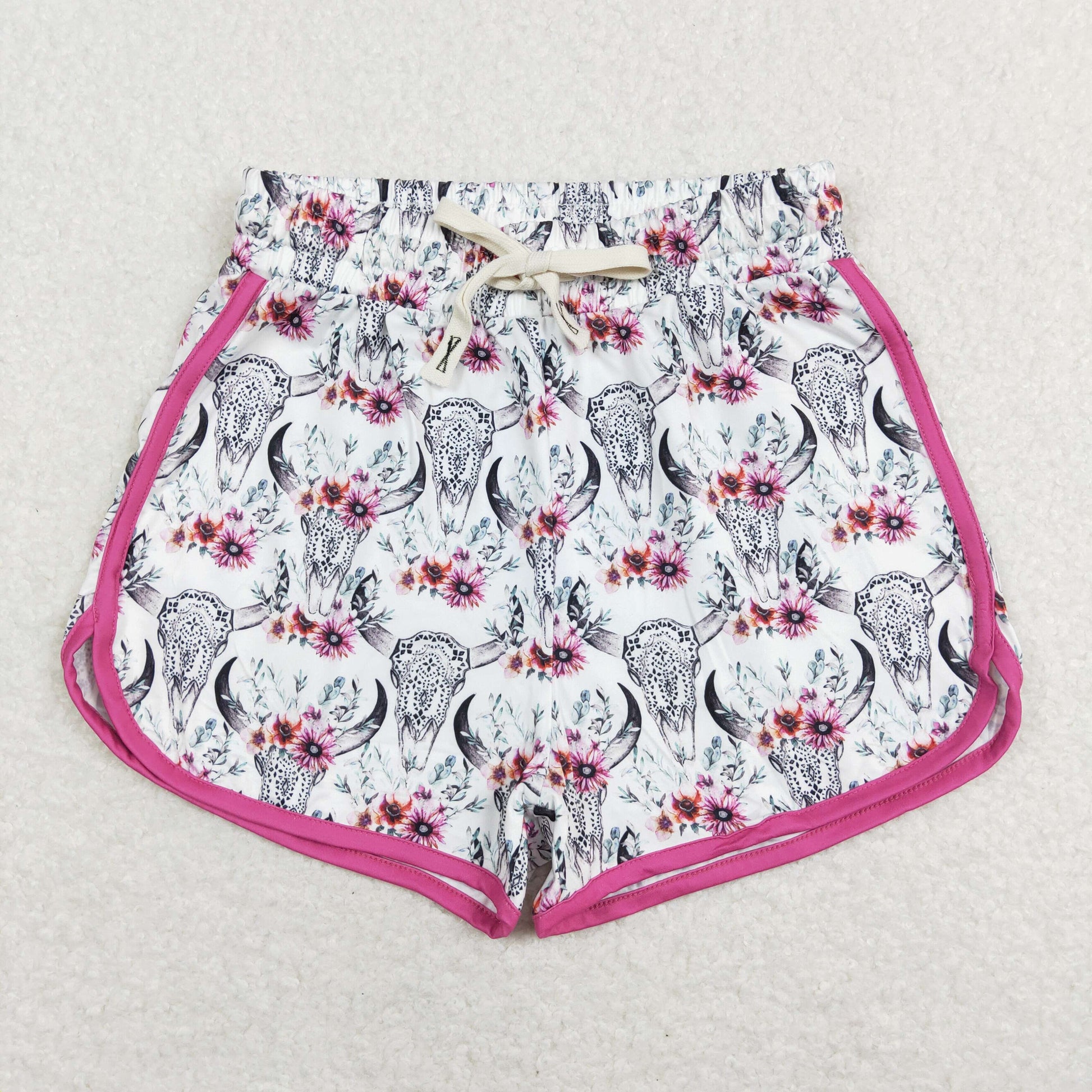 SS0127 Adult Women Western Cow Floral Summer Running Shorts