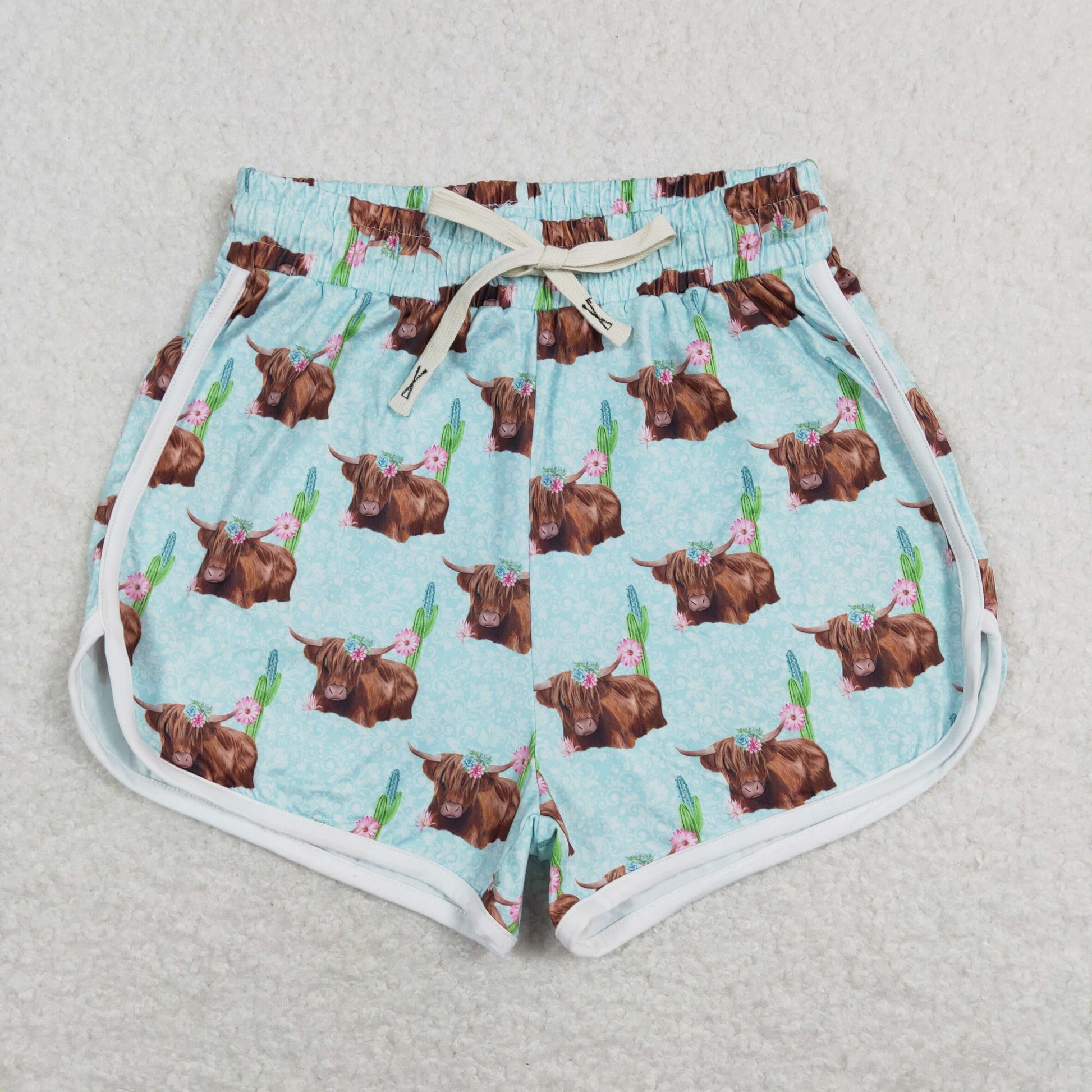 SS0128 Adult Women Western Cow Print Summer Blue Running Shorts