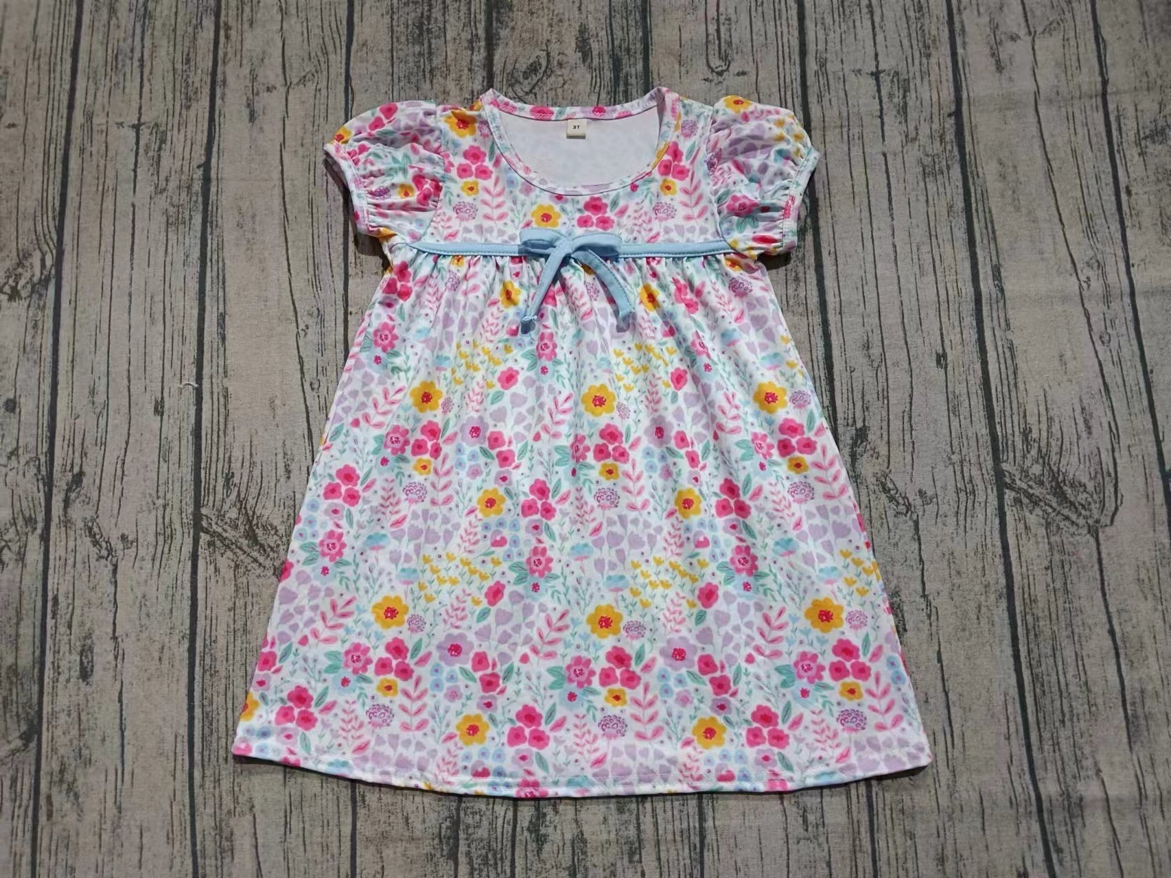 ( Moq 5 ) Girls Kids Short Sleeves Flower Knee Length Dress