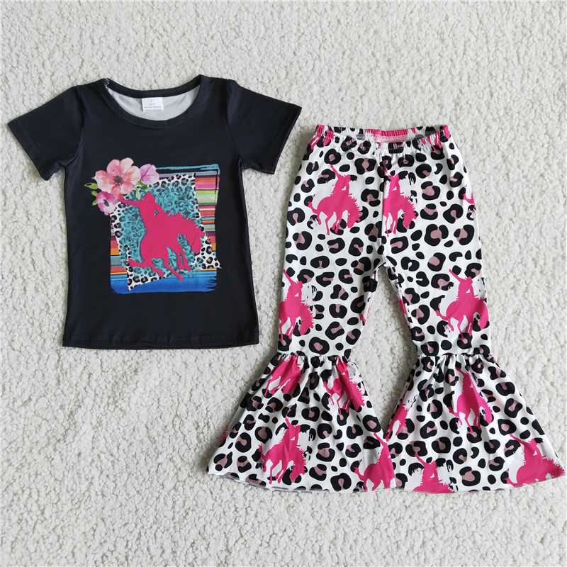 Western horseman Cow Girl Leopard Bell Pants Set